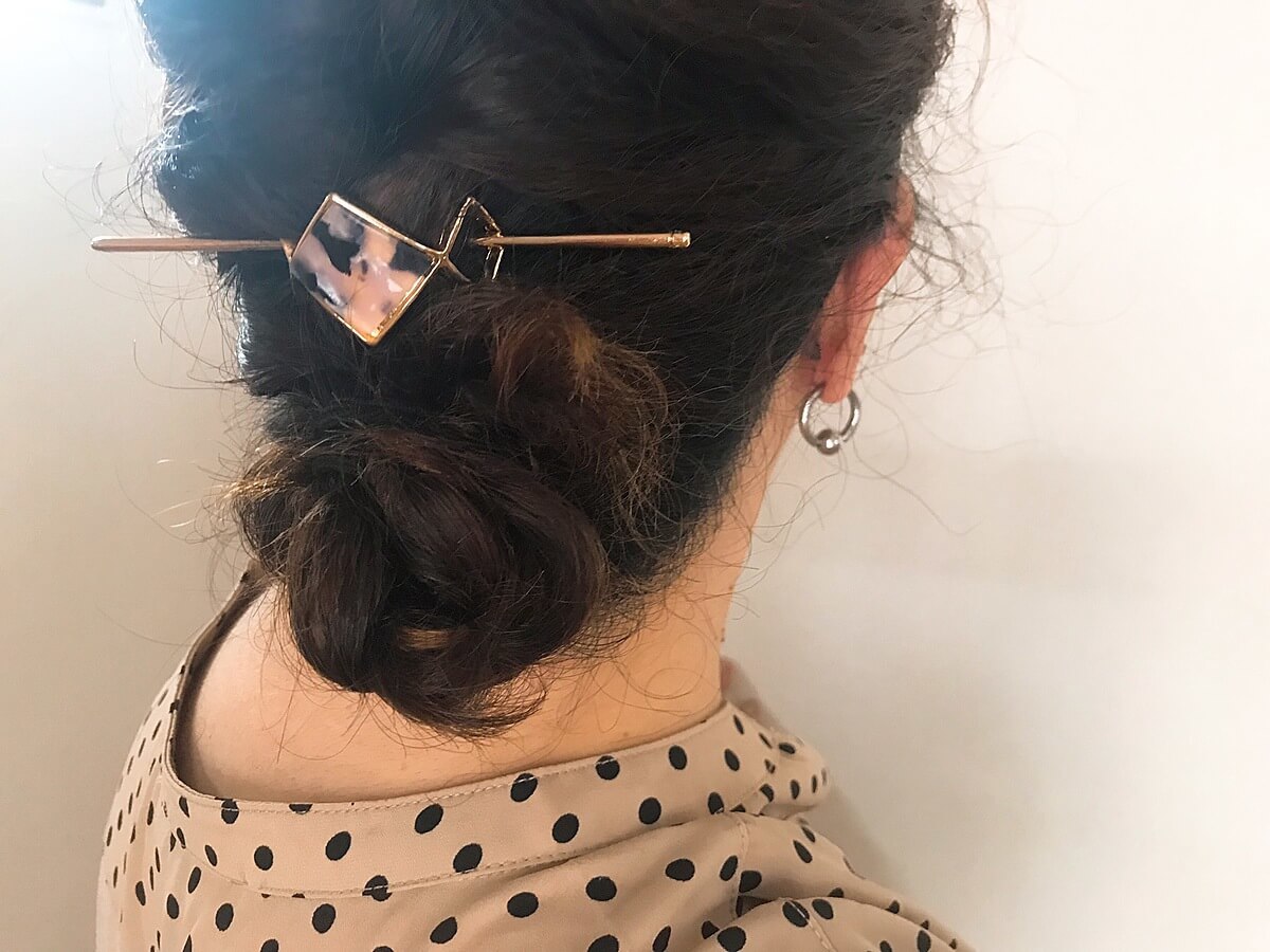 髪ゴム部分に、グサッと挿すだけ。ハイ出来上がり!!