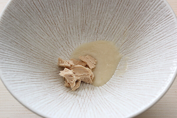 こちらにお湯270mlとごま油少々を入れて良く混ぜます。