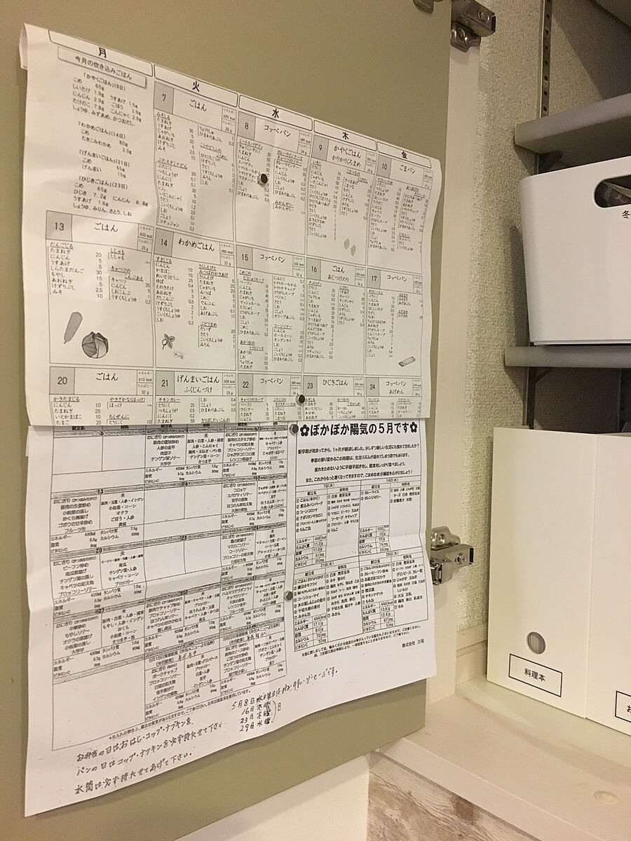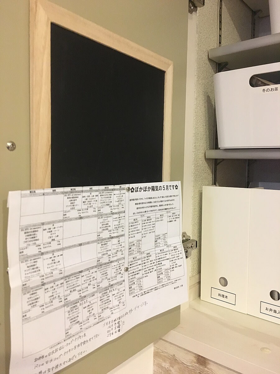 子ども達が持ち帰ってくる「献立表」。
