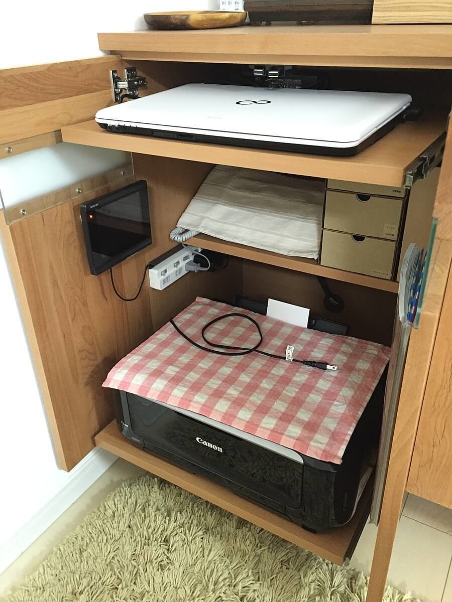 そこで、ダイニングから目の届く電話台の中に設置することに。