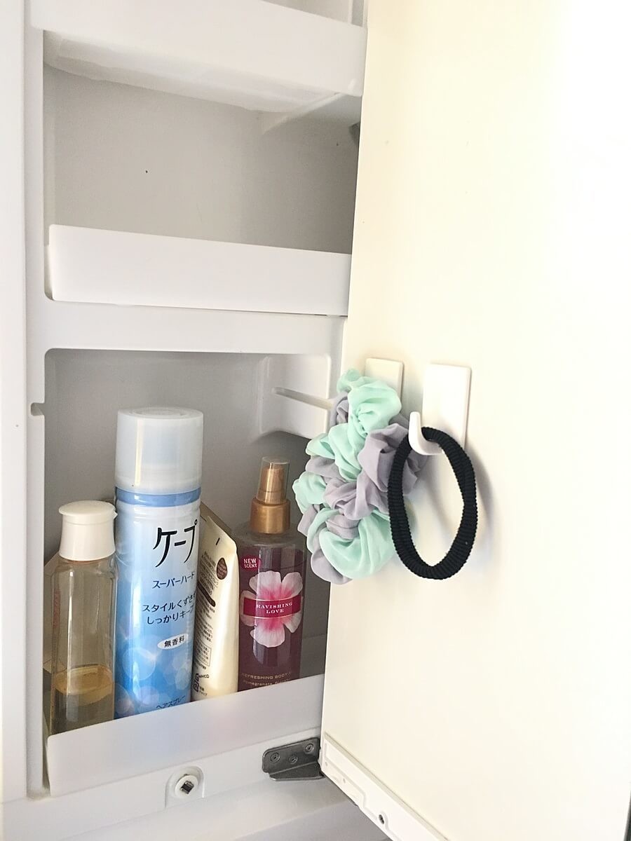 使いたい物は手の届くこところに!ヘアゴムは洗面台鏡裏でサッと取れる