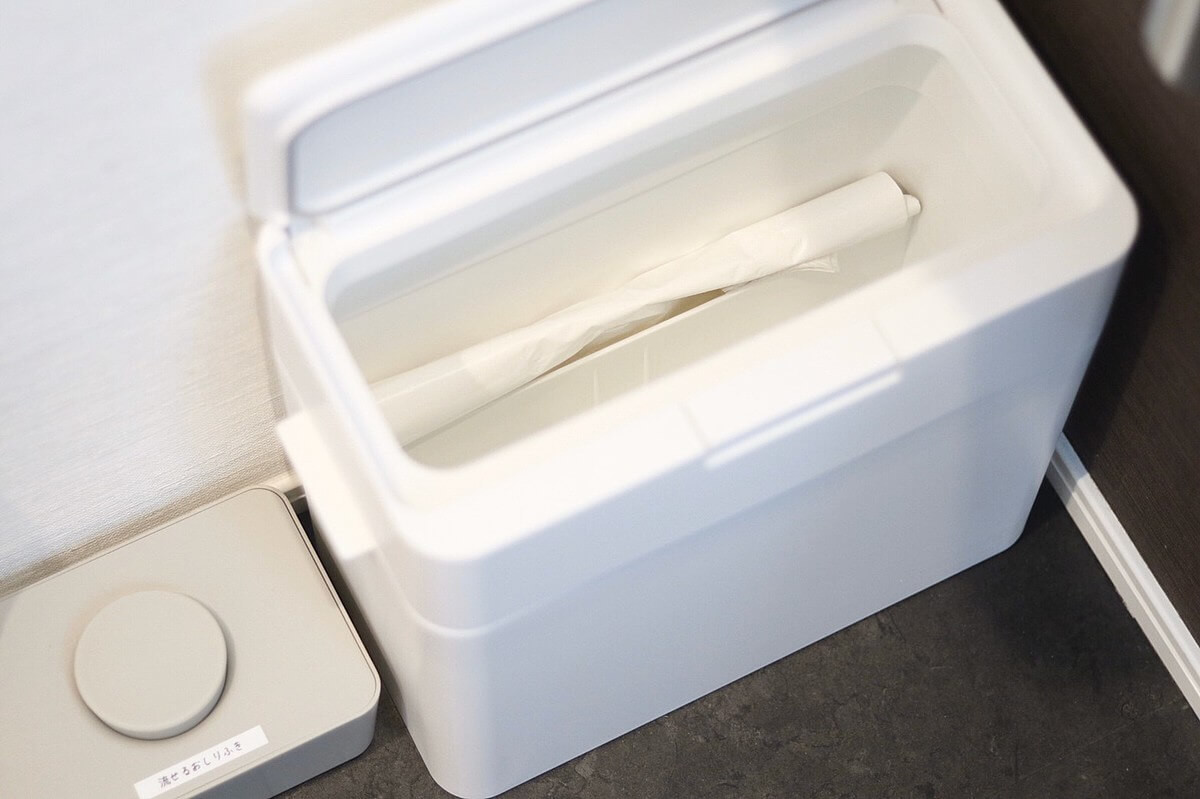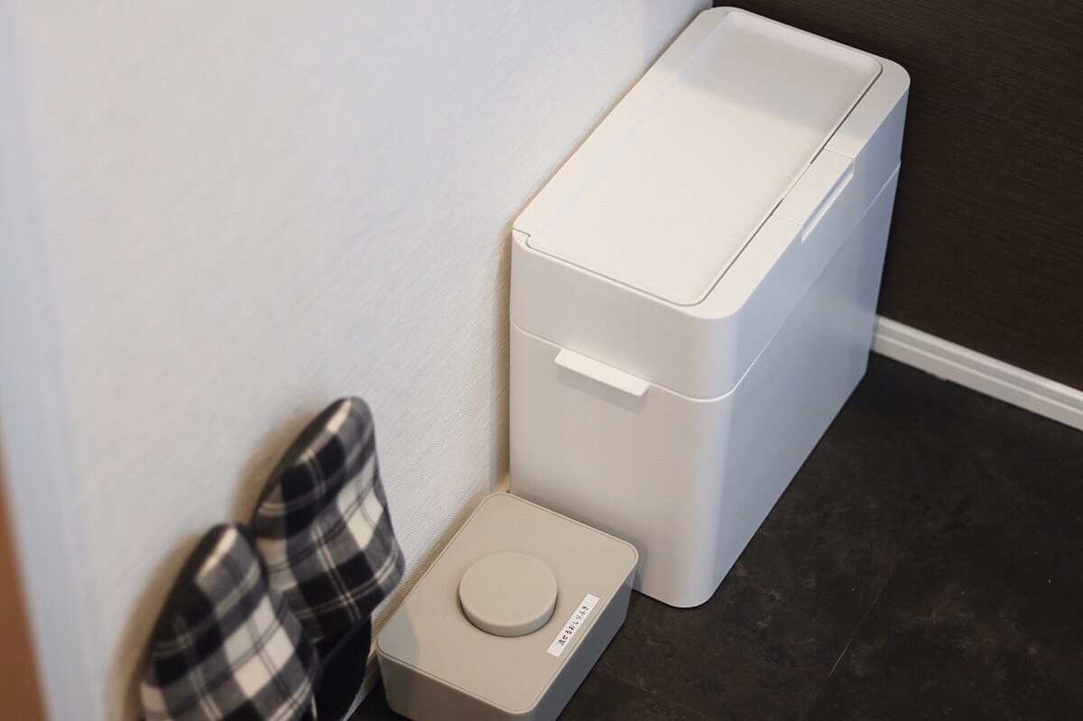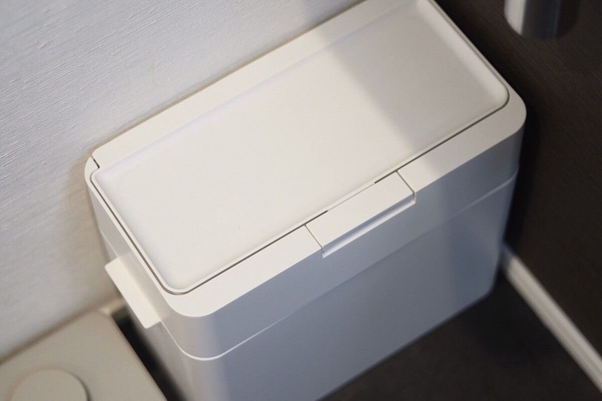 大きな丸いバケツを置くとトイレが狭くなっちゃうわ。という方でも、このシールズ9.5の密閉ダストボックスなら省スペースで置けます。