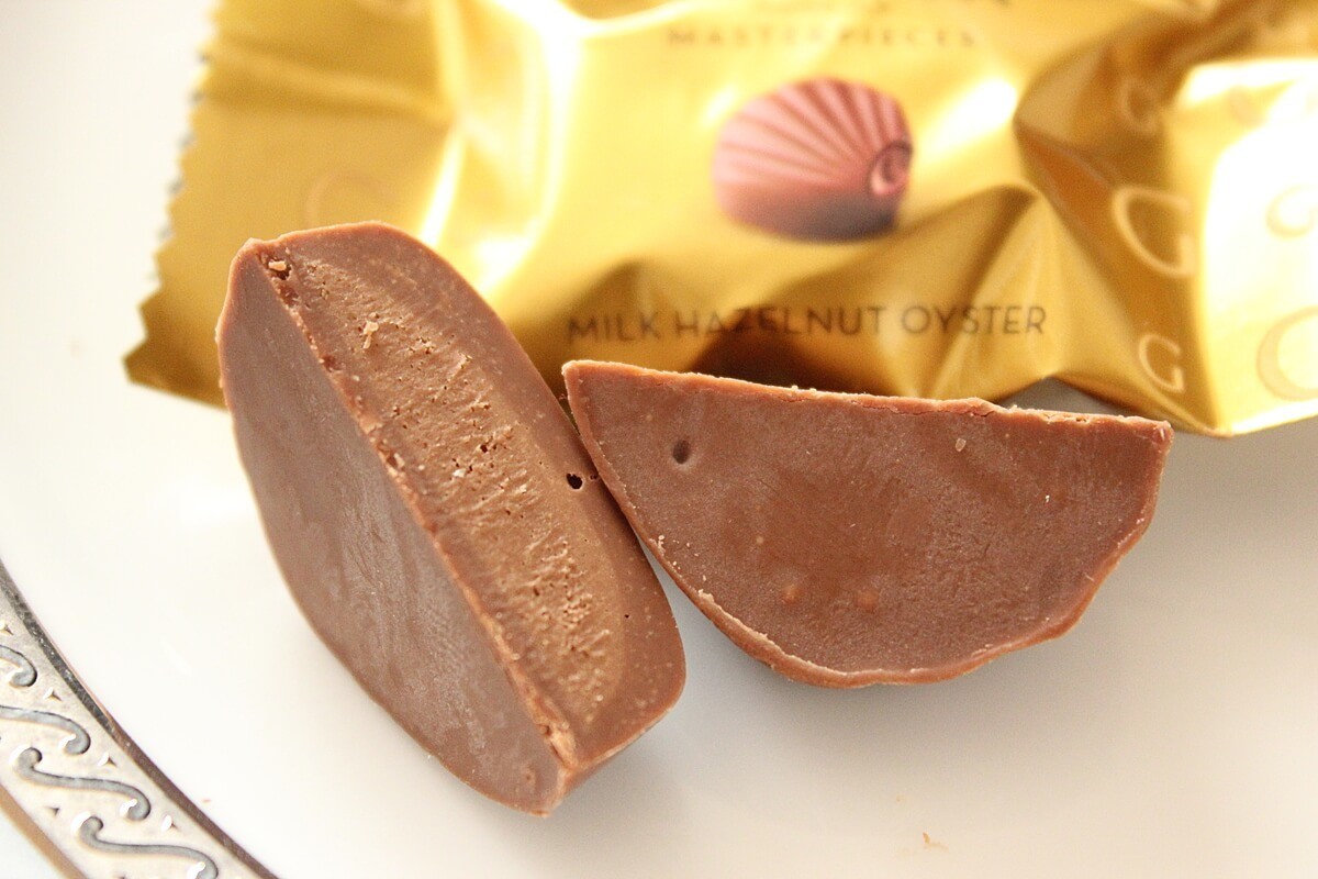 周りのミルクチョコレートも中のフィリングもとても美味しく、ヘーゼルナッツの味がしっかりとし、口の中で滑らかに溶けていきます。