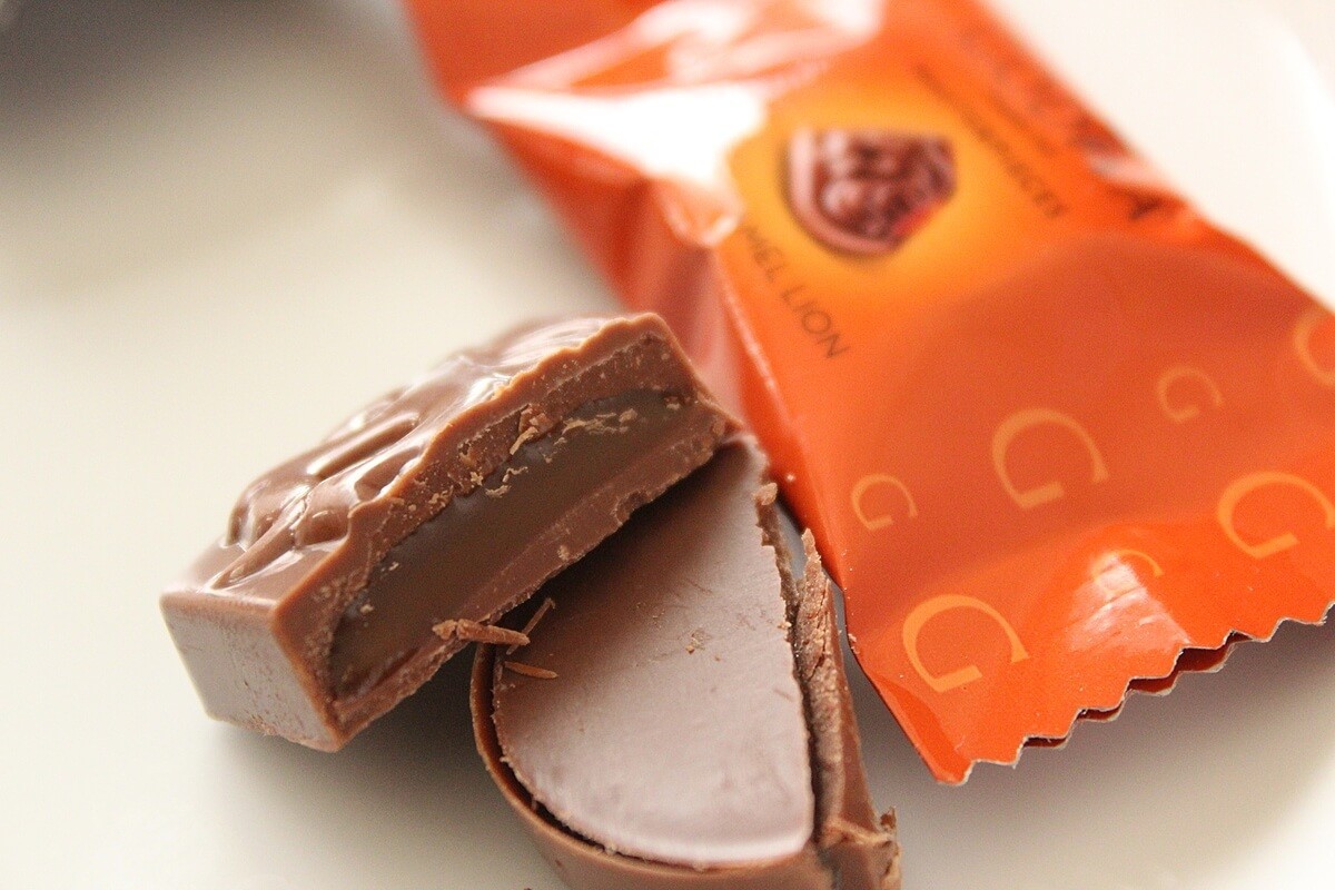 ベルギーのシンボルのライオンをモチーフとしたデザインの、ミルクチョコレートキャラメル。