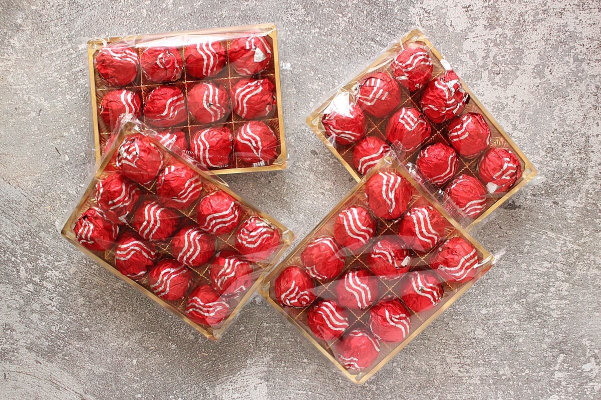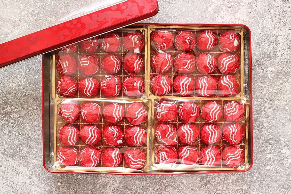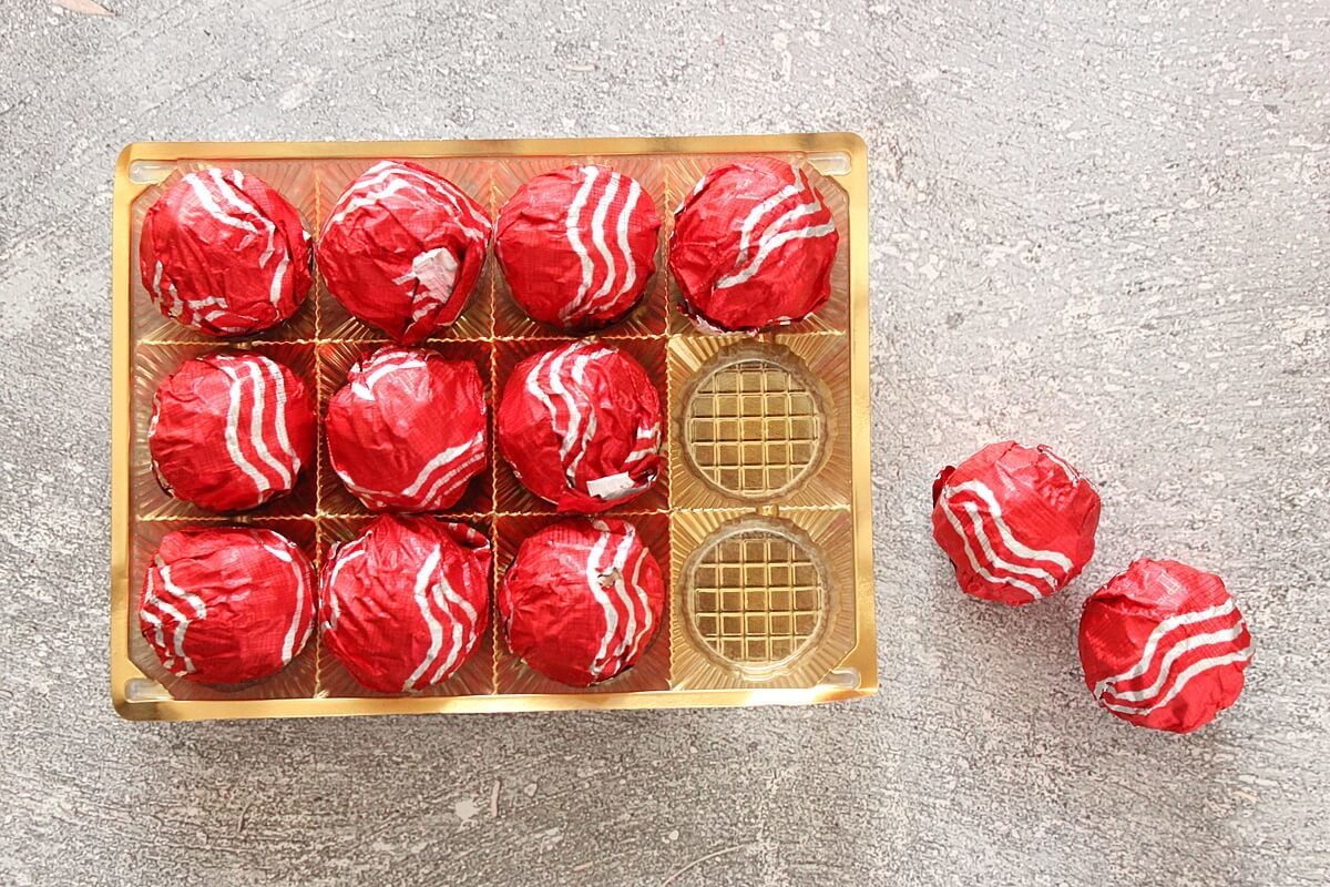 クリスマスやバレンタインを思わせる、赤い包み紙が可愛いです♪