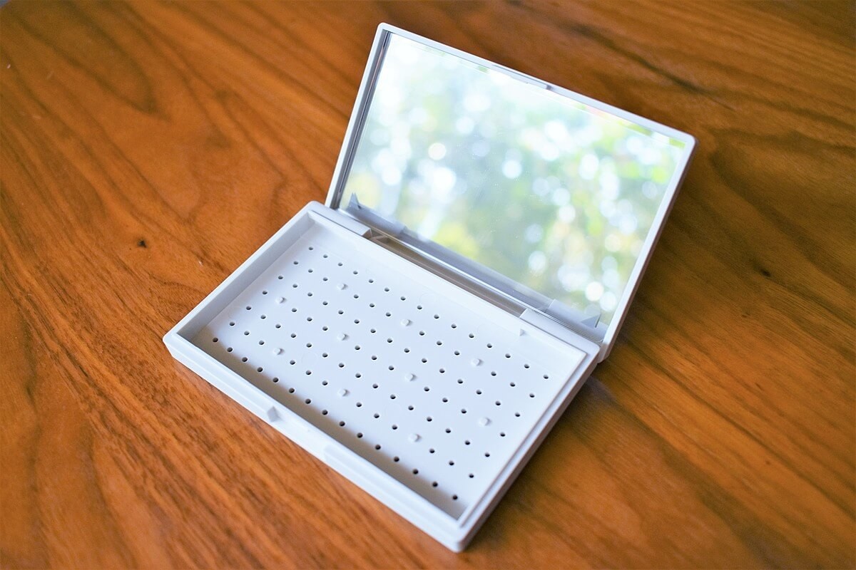 ただし、無印のメイクパレットは「底面はザルのように穴があいている」ので、粉類が落ちる可能性もあり。