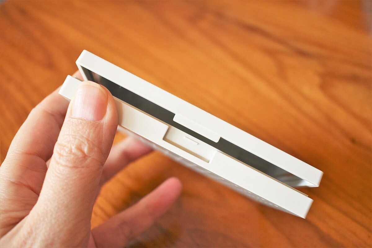 メイクパレットの蓋には「カチン」と硬めに閉まるツメがついています。