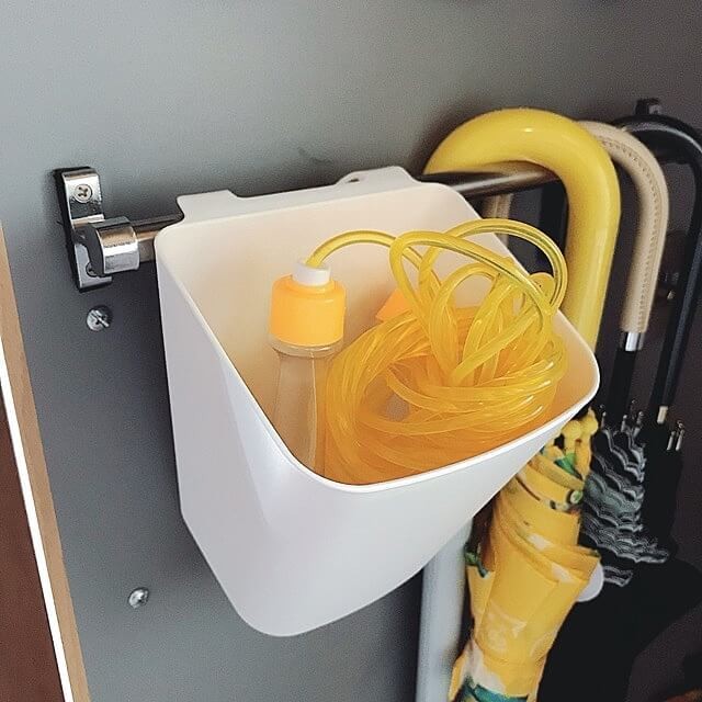 お外遊びグッズがたくさんある場合は、下駄箱におもちゃ箱を作ってあげるといいですが、マンション住まいなどで外遊び品は縄跳びやシャボン玉など小さいものしかないという家庭なら、この小物入れでピッタリかも。