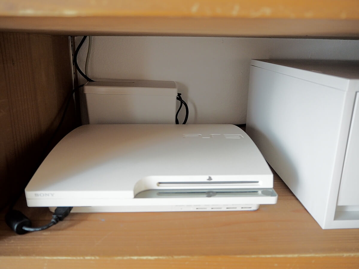 PlayStationを録画機としても使用している我が家は、プレステを置いている後ろに配線が集結しています。