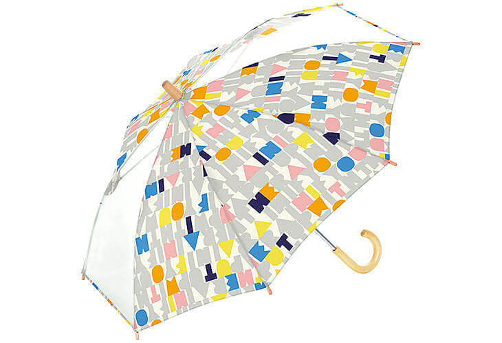 子ども傘らしいポップなデザインに、あたたかみのある木製ハンドルの組み合わせがおしゃれですね。