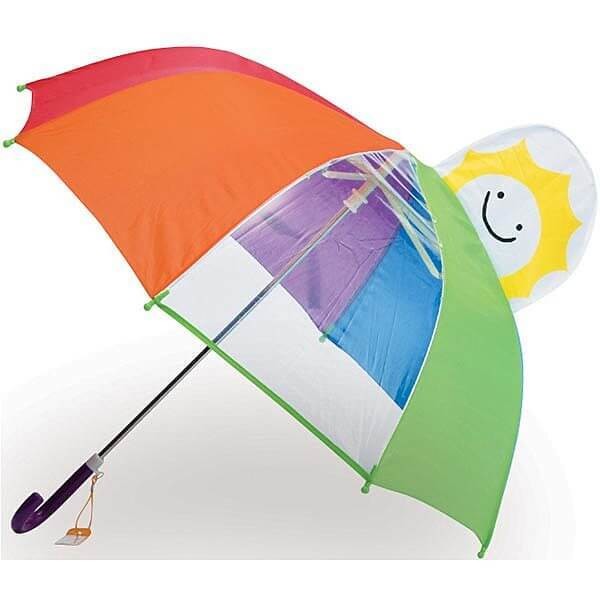 子どもに大人気のレインボーカラーに、傘をさすとひょっこり顔を出すおひさまモチーフがとってもキュート♪