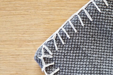 白い糸でざっくりと縫われたステッチと優しいグレーのコントラストがなんとも可愛い、このクッションカバー。綿ベースの素材で肌触りはサラリとしており、オールシーズン使えそうなクッションカバーです。