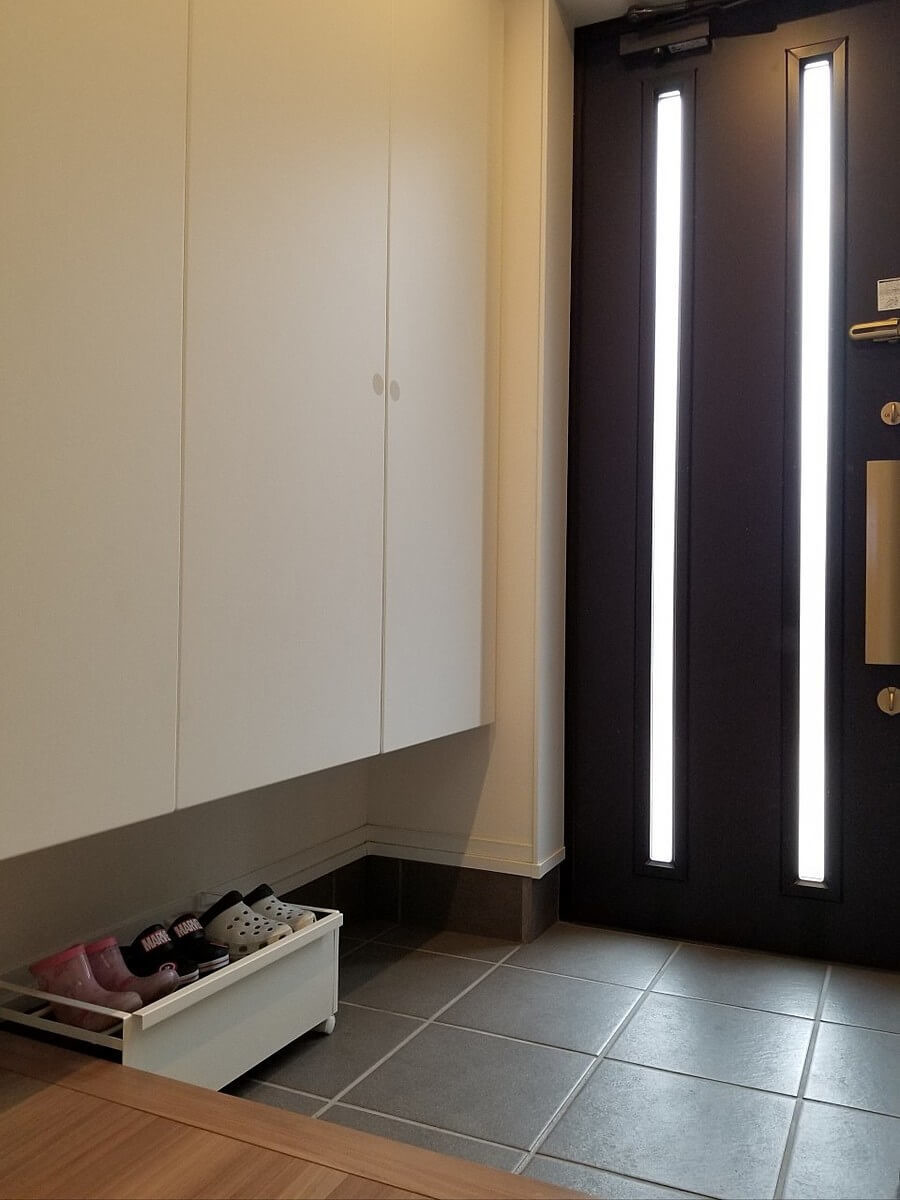 子どもの分だけでいつも6足が散らかってしまい、端に寄せて並べてもどうしても場所を取ってしまい、履き掃除する時は1足1足運ぶ手間があり悩んでいました。