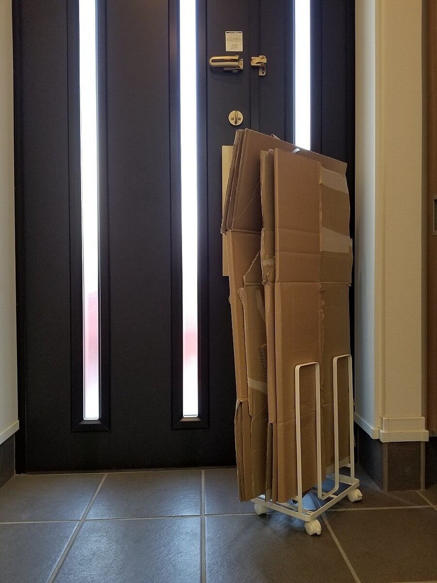 ネットショッピングが多い私、すぐにダンボールがたまってしまい、いっぱいになってくるとちょっと当たるだけでバタバタと倒れたり、少なかったら少なかったで自立せず倒れたり。