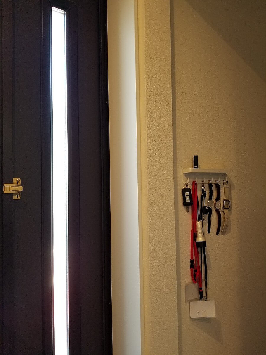 フックがたくさんあるので、車・自転車・家の鍵はもちろん、出掛ける時に必要な腕時計や参観などで学校に行く時に必要な保護者証をかけておくと、外出する時に慌てずに用意することが出来ます。