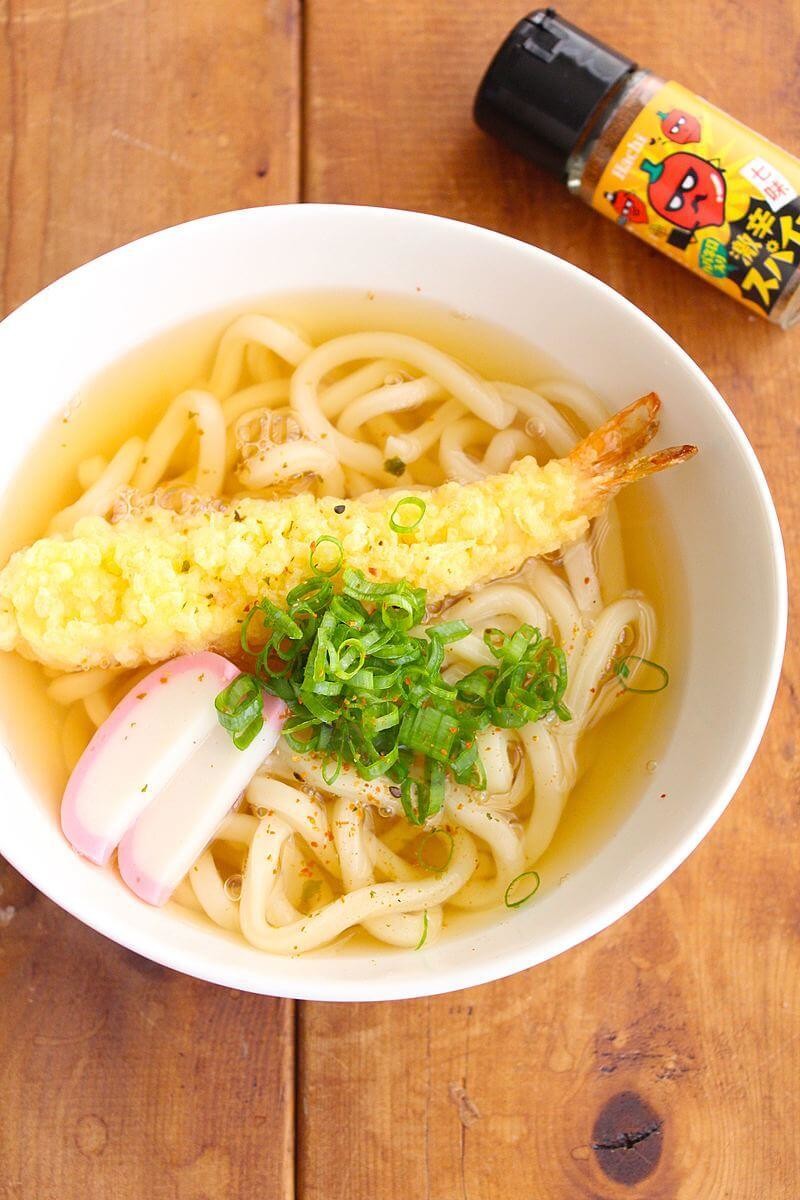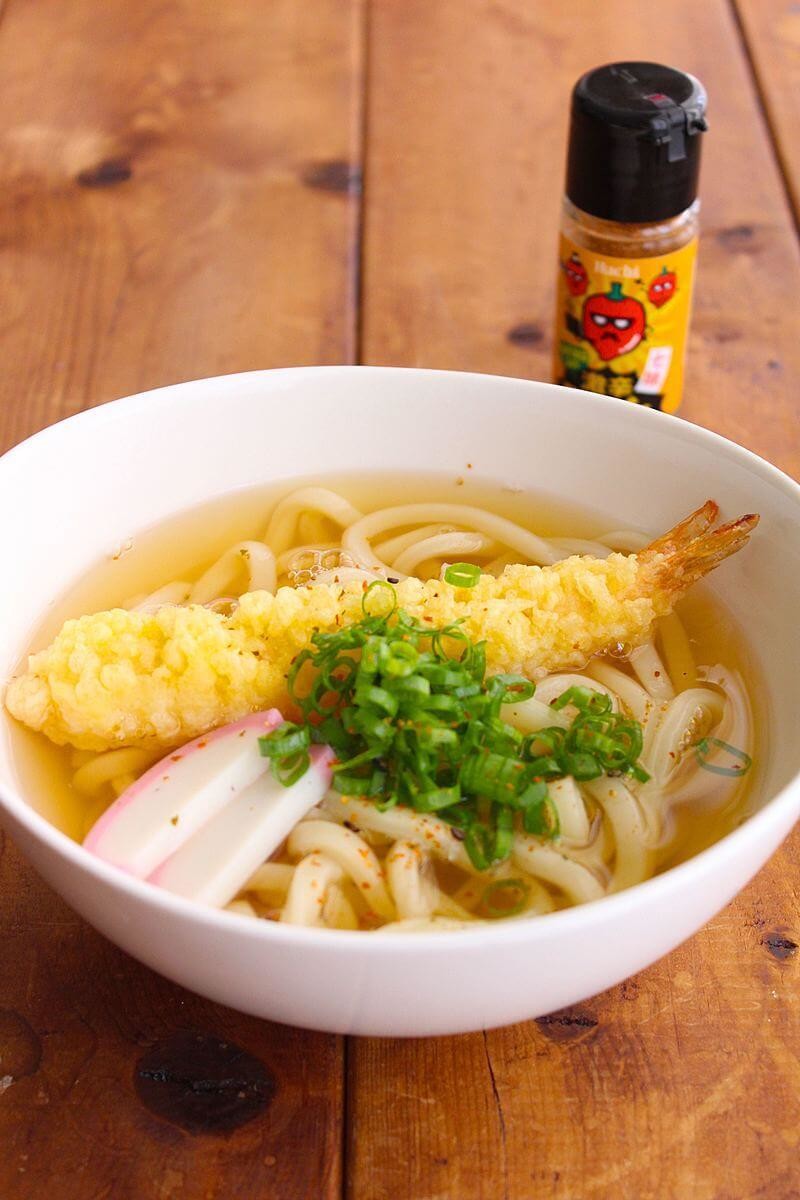 というわけで、まずは定番の天ぷらうどんにかけてみました。