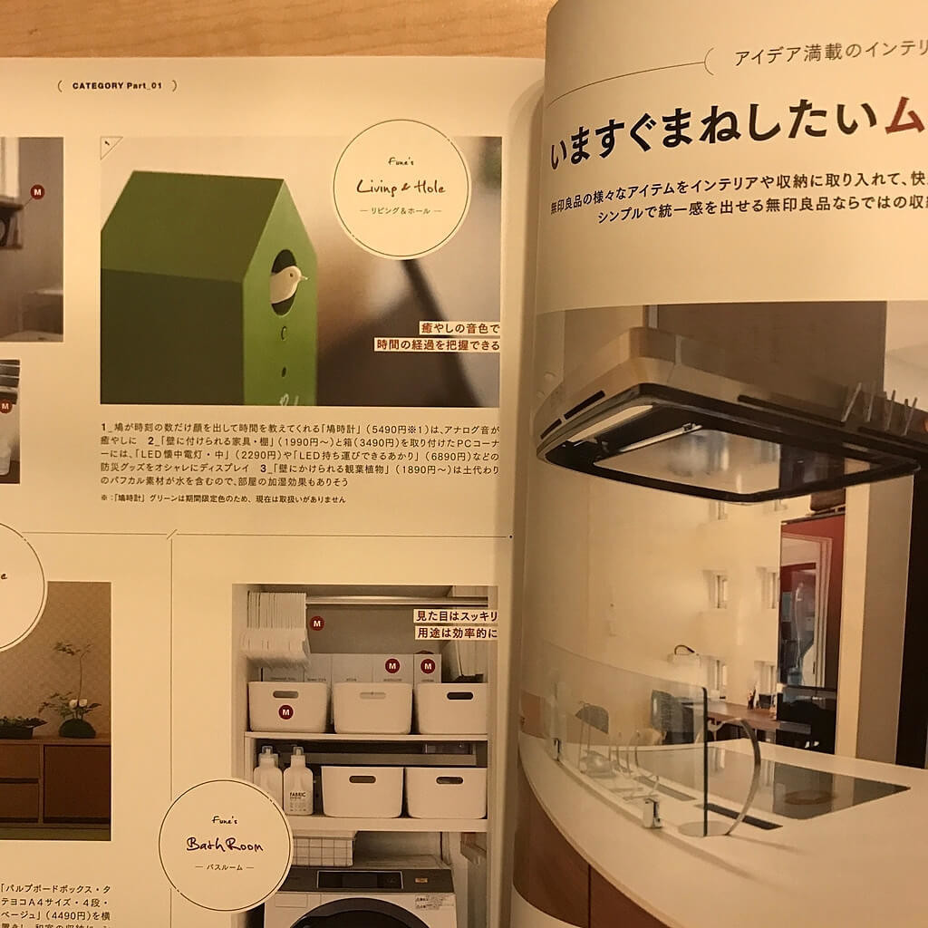この鳩時計、無印良品の特集本『無印良品でちょっといい暮らし (学研ムック)』でのフネ宅のページでも取り上げられましたよ〜。そしてインタビューでは「今一番のお気に入り」とオススメしました。