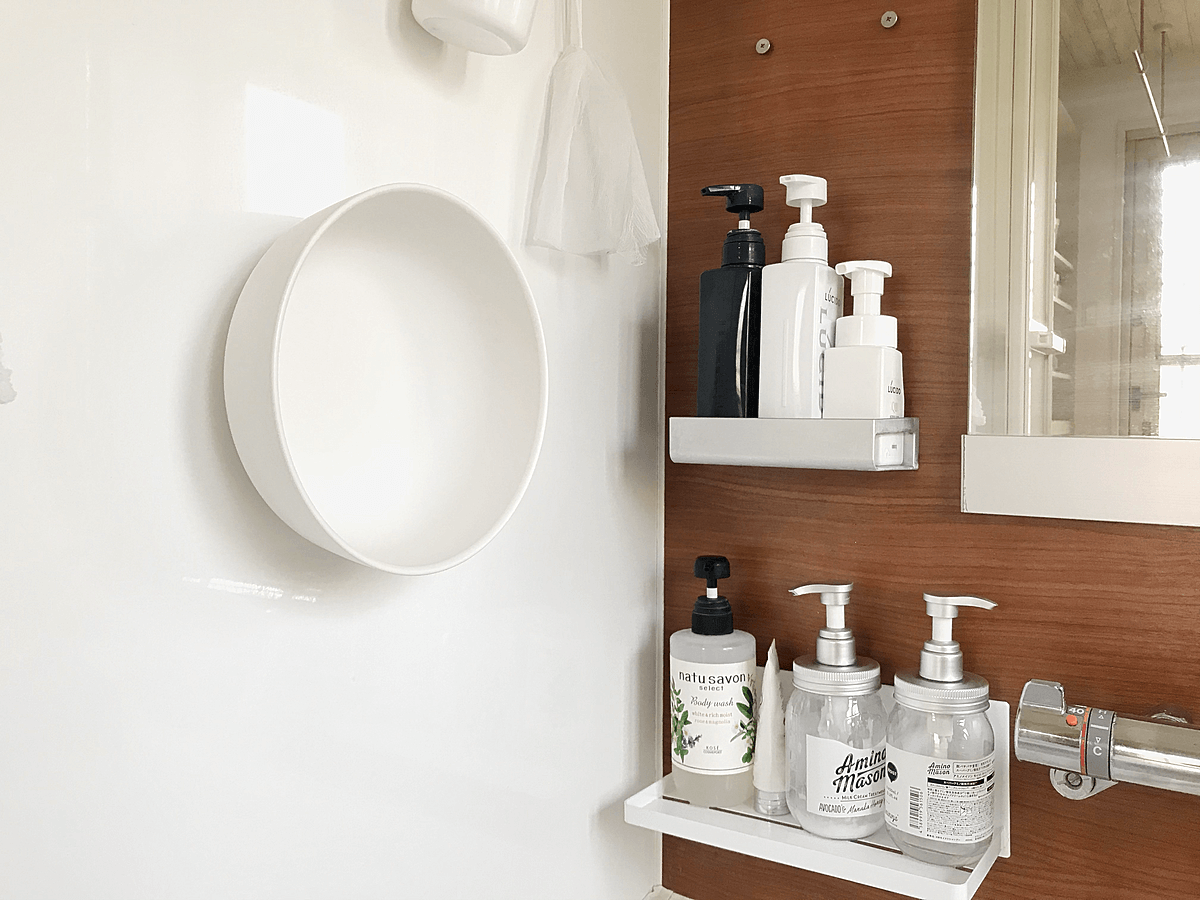 上部はお風呂場の汚れの原因となる石鹸カスが届きにくく汚れにくいので、収納には最適な場所です。