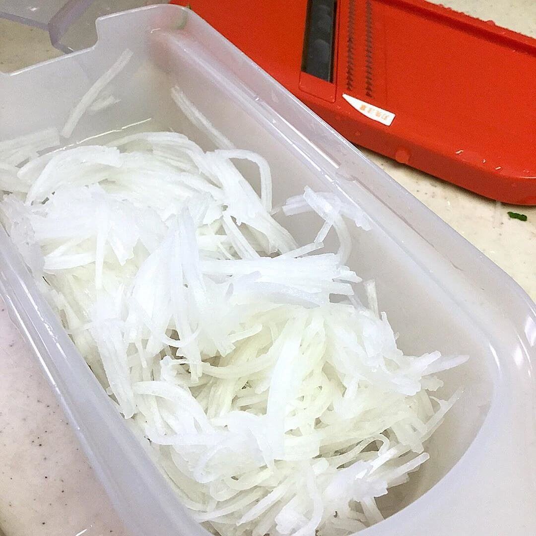@pipi.kapi_cookさんの家で定番の、しゃぶしゃぶにあわせる「香味野菜」もスライサーで作られています。