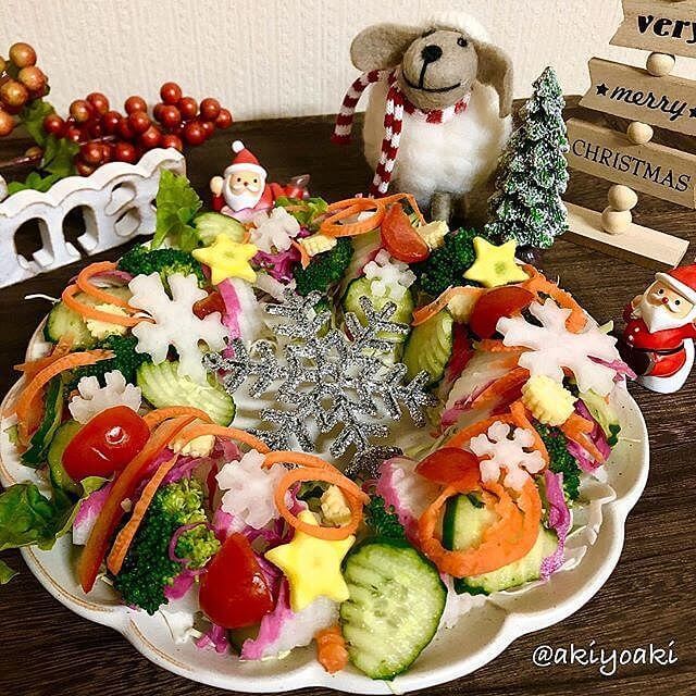 @akiyoakiさんはクリスマスに、クイジナート「ベジタブル スパイラルスライサー」を使って、豪華絢爛なリースサラダを作りました。