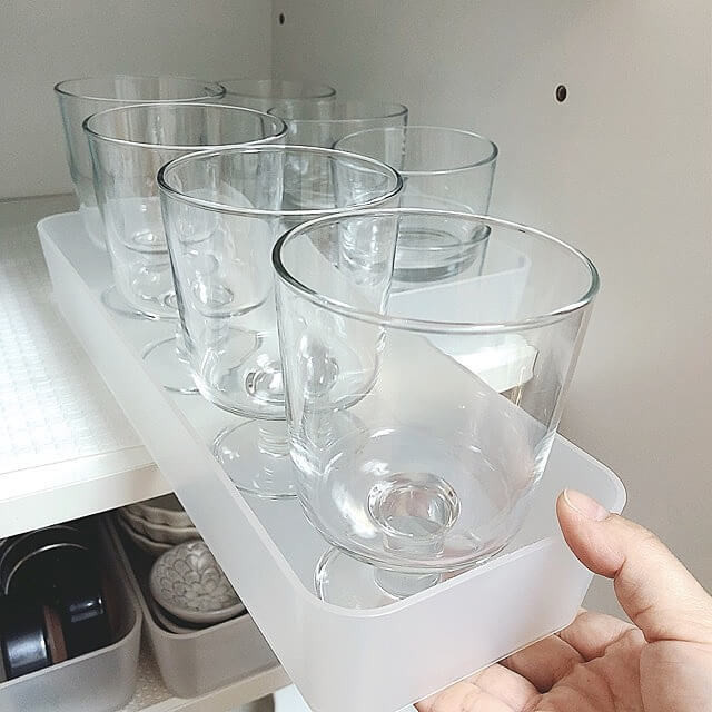 ボックスに入れられると、奥に深い食器棚でも引き出せるので、取り出しやすくなりますね。
