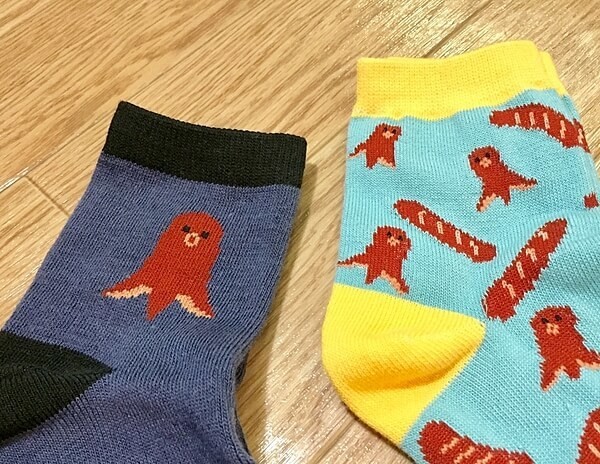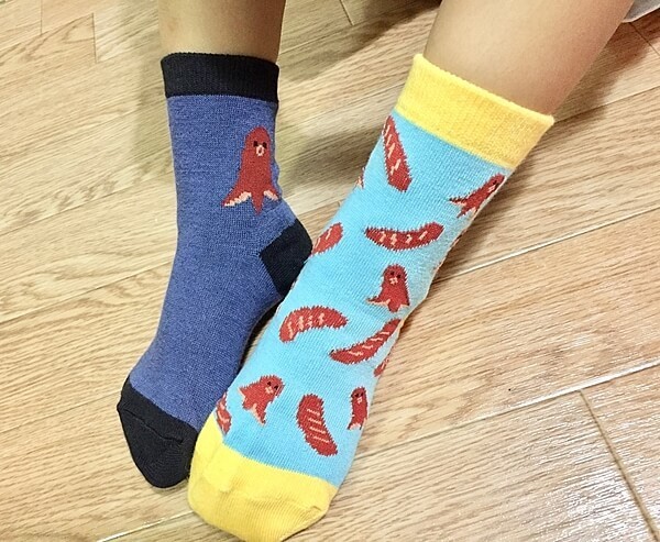 ▲意図的に違うデザインの靴下を片方ずつ履かせてます