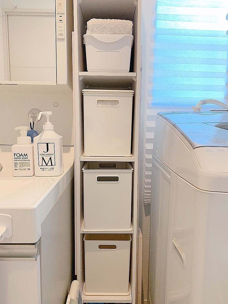 洗濯機横の“すき間”問題をカラボで解決!細く高くで収納力UP