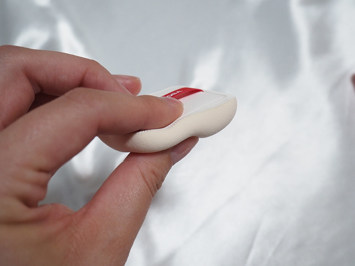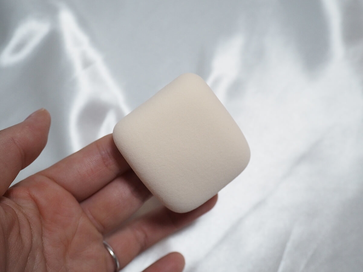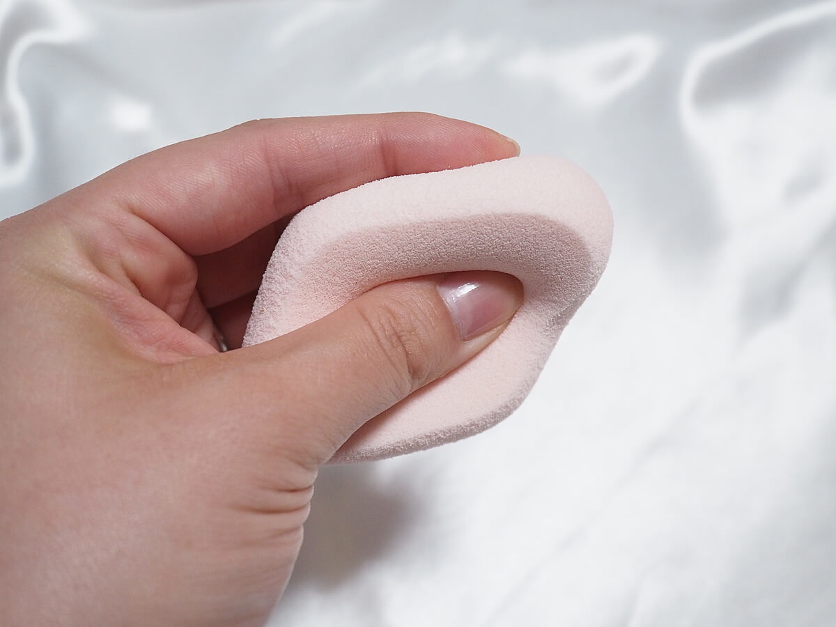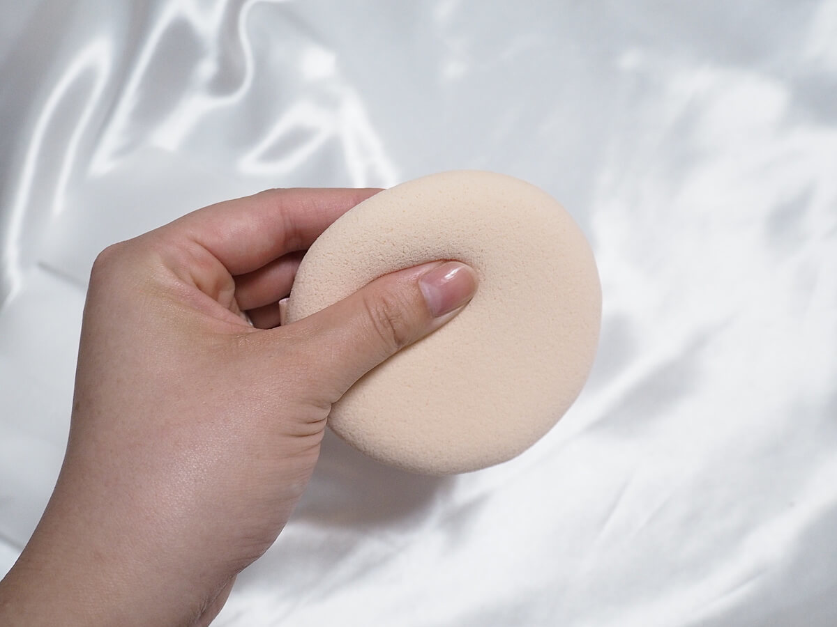 力が入りすぎることもなく、パウダリーファンデーションをムラなく肌の上に広げられる、とても優秀なスポンジです。