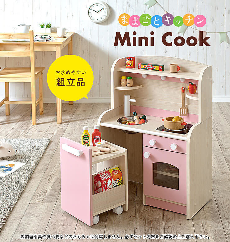 木製なのでリビングの雰囲気を邪魔せず、自然になじみます。また木製だと大事に使えば劣化せず、子どもの子どもにも使ってもらうことができます。収納のあるタイプだと、キッチンがそのままおもちゃ箱の役割もするので安心です。