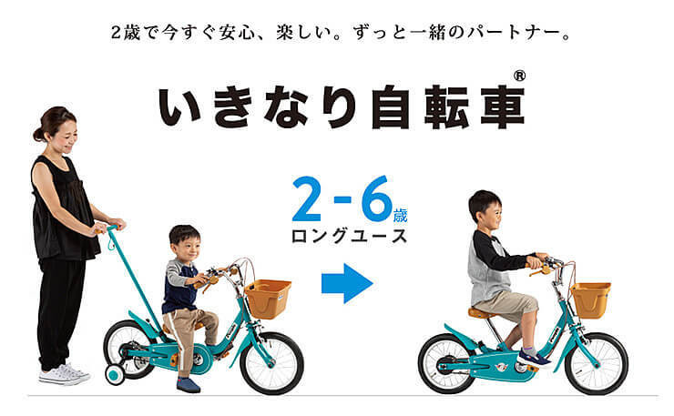 うしろに舵取り棒がついていて、大人がしっかりとサポートできるので3歳でも安心して乗せることのできる自転車です。 14インチですが、サドルがすごく伸びるので小学校入学前までと長い間乗ることができます。