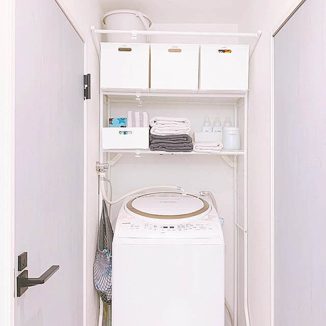 洗面所やお風呂の道具も収納できるので使い勝手もバツグンです。お洗濯やバスタイムが楽しみになりそうなランドリーラックです。