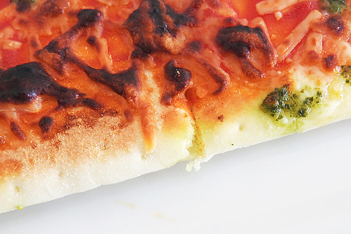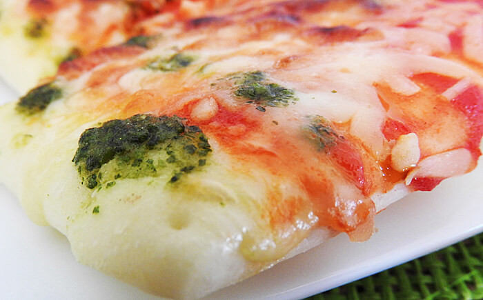 ふわふわのピザ生地とバジルの香りが素晴らしいピザです。思ったよりもバジルが主張しているピザですので、子どもにはどうなのかなと心配しましたが、我が家の4歳と2歳の子どもは気にせずに食べていました。