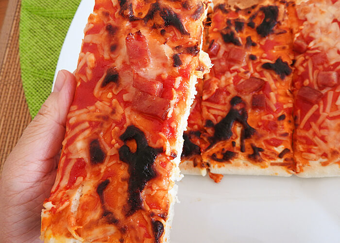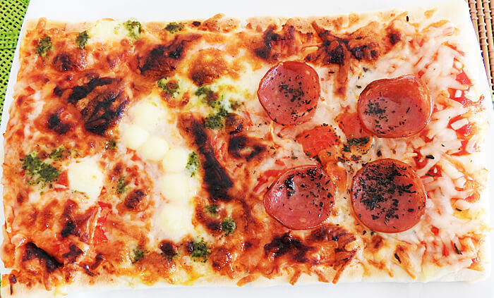 ピザの生地は柔らか目ですので、小さな子どもでも食べやすいですよ。また、ピザはべっとりとしていないので、手が汚れないところも嬉しいポイント。