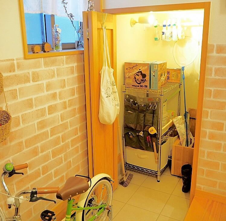 工具や庭の掃除グッズを収納している玄関近くの土間収納。