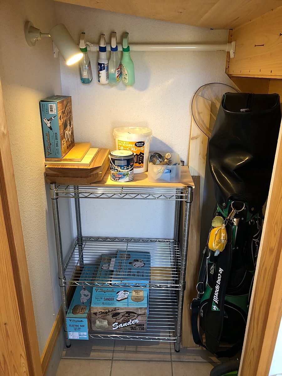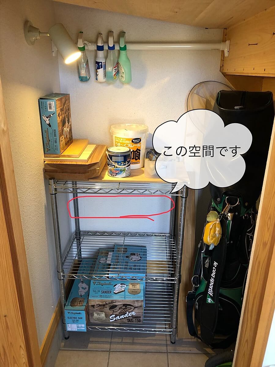 我が家の土間収納は階段下にあるので、右奥のスペースは高さが低くなっている作りになっていて、空間利用が難しい場所でもあります。