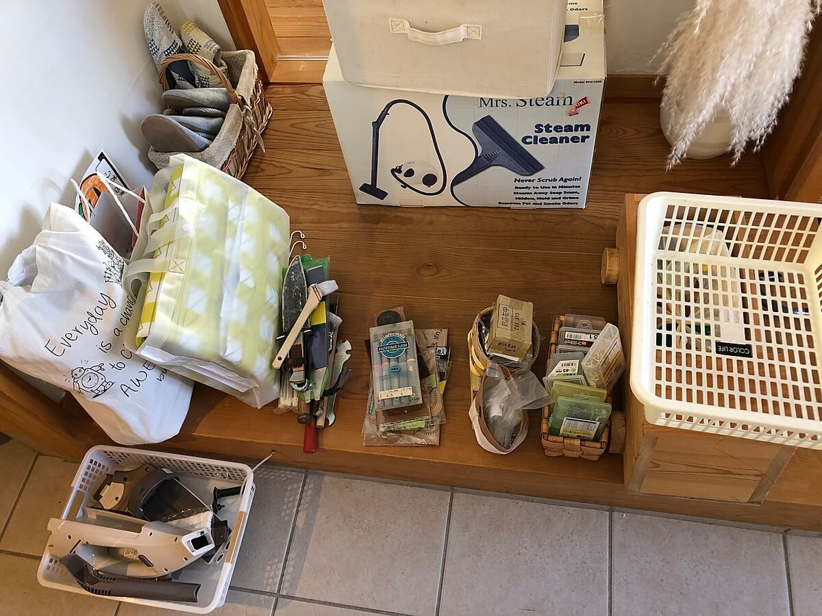 そこで、年末の寒い時期の大掃除前に、この土間&階段下収納をニトリのケースを活用して整理整頓しました。