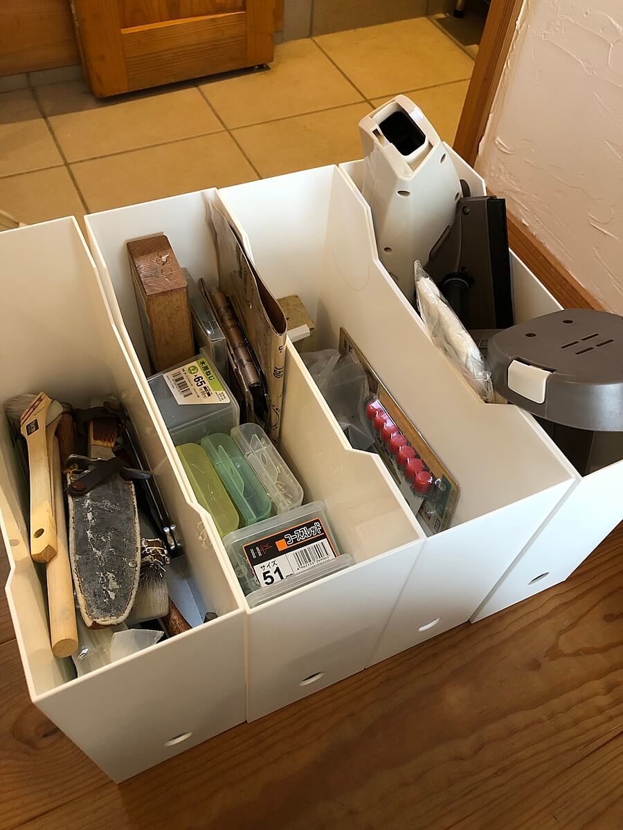 これはこれでスッキリして見えるんですが、大きな箱に色んなモノ達をごちゃ混ぜに入れているので、使い勝手は最悪…という状況でした。