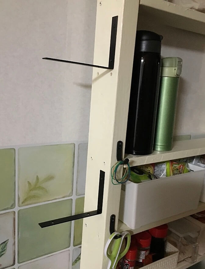 セリア「アイアンブラケット」を横向きに2本取り付けてみました。「アイアンブラケット」は棚受けとして使用する商品です。