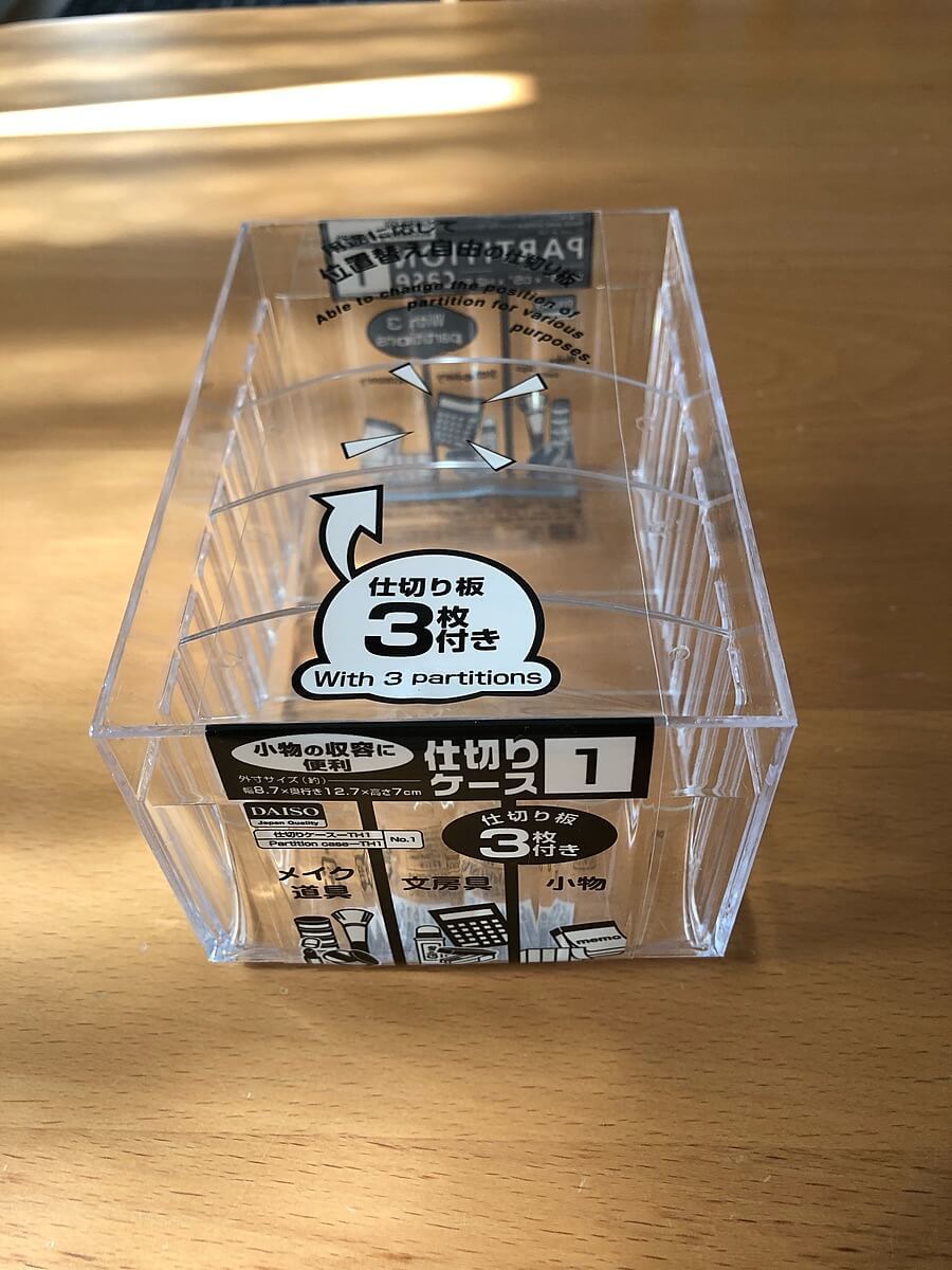 ダイソー「仕切りケース」で収納することになりました(めでたし、めでたし)。