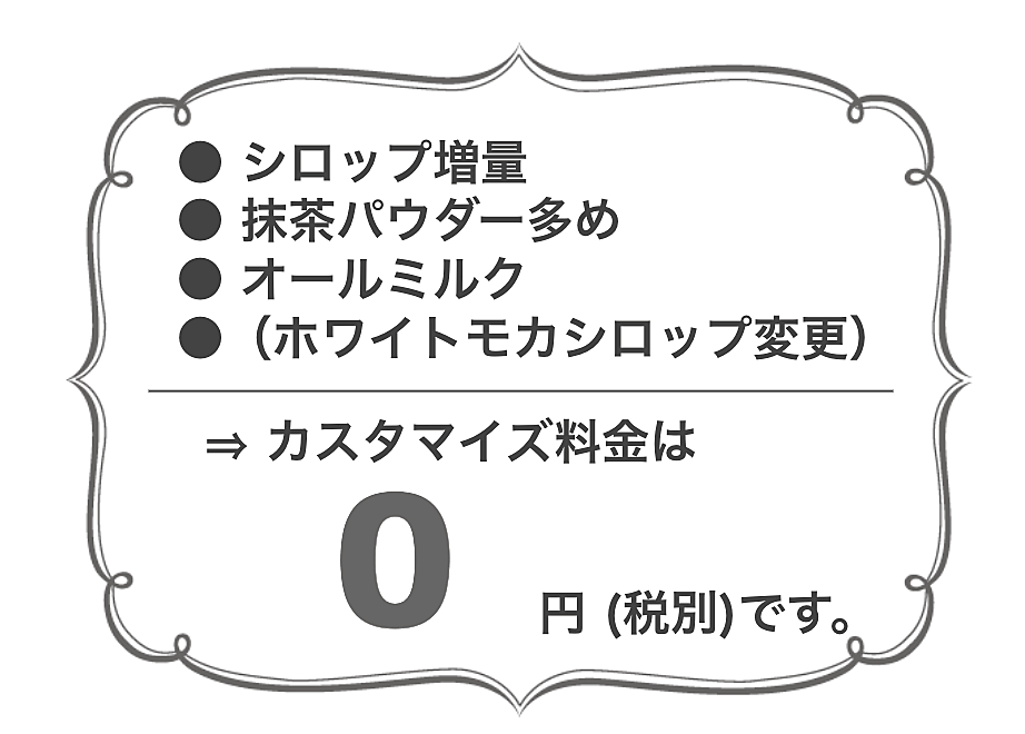 ここからは、抹茶ティーラテおすすめカスタマイズを紹介します。
