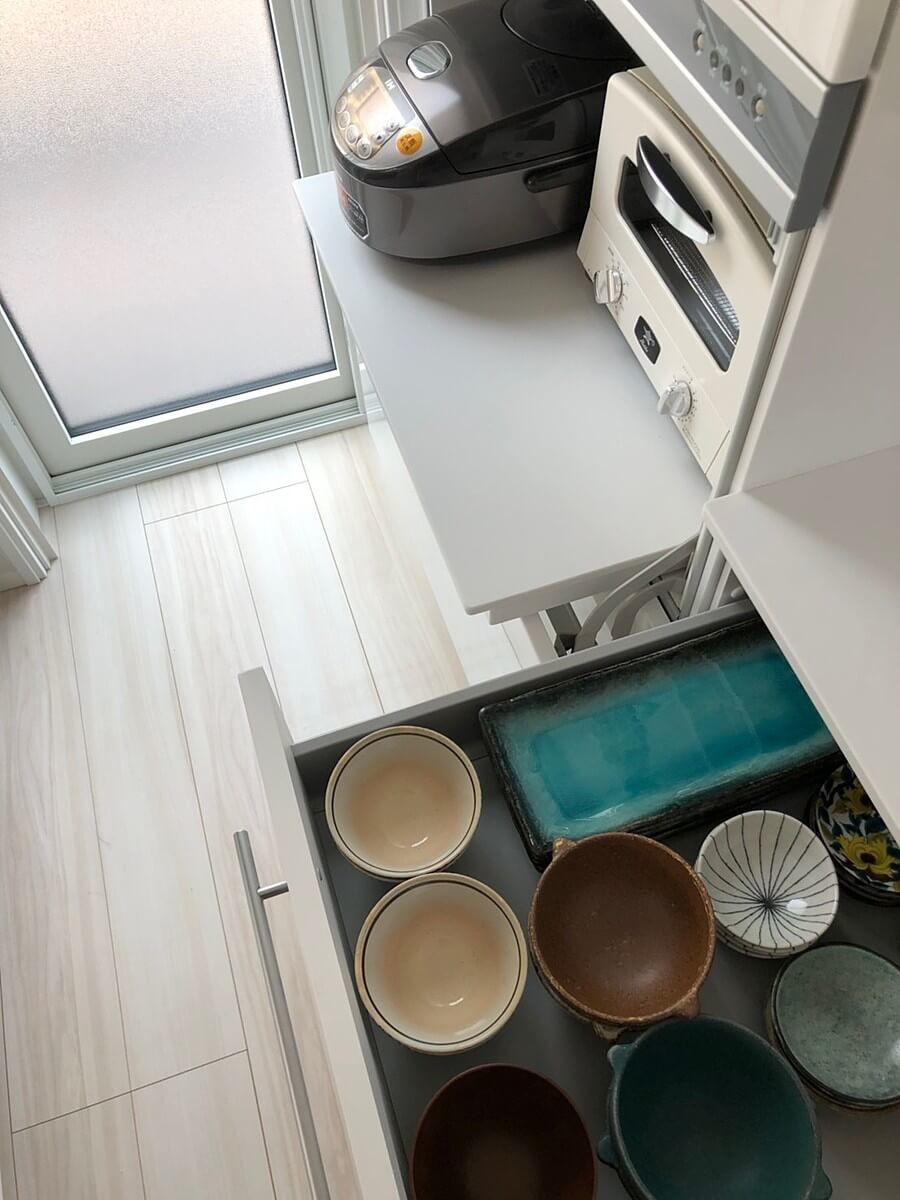 炊飯器を収納している隣の引き出しに、お椀を入れています。