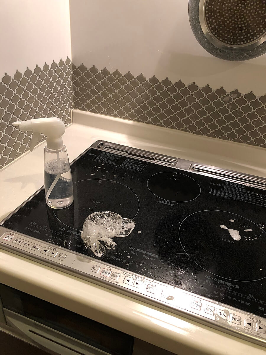 ちょっとした汚れ程度であれば、ラップに洗剤をつけてスポンジ同様に磨くだけ!