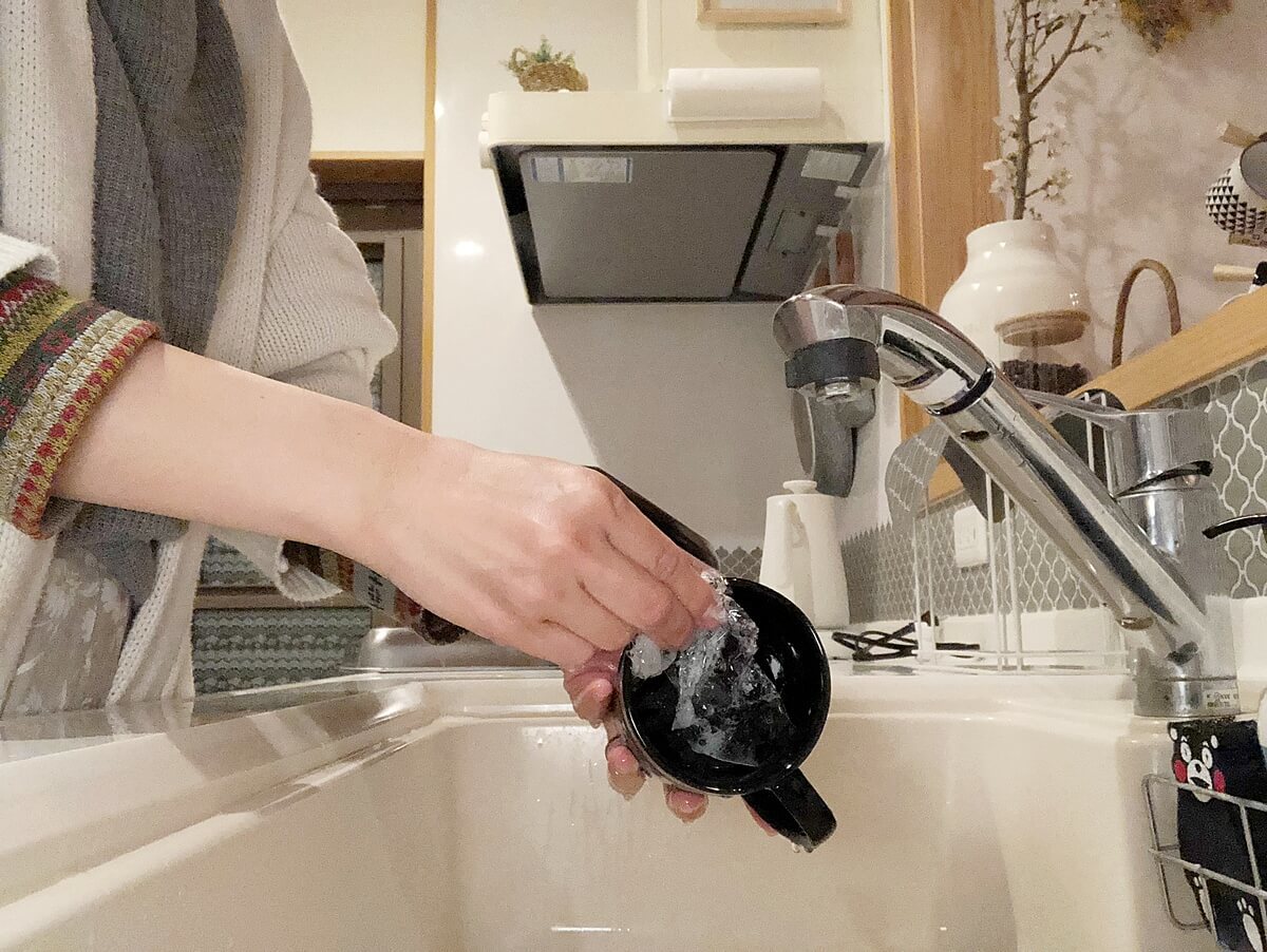 これはInstagramのフォロワーさんに教えて頂いた方法なのですが、ラップで食器洗いが出来るんです!