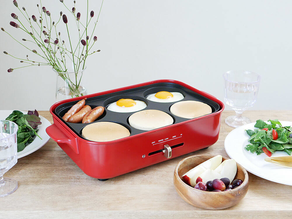 目玉焼きやパンケーキなども一度に6個分焼くことが出来るので、忙しい朝にもってこいのマルチプレート。