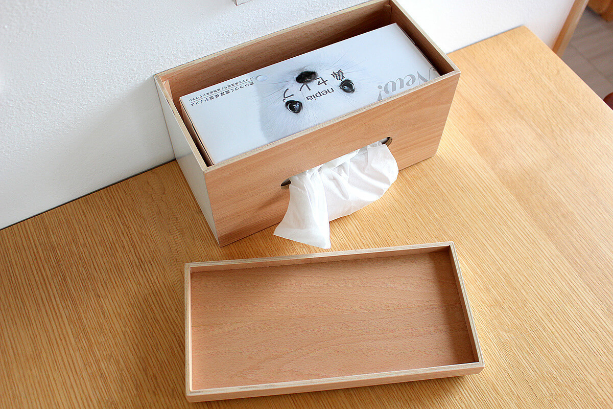 こちらも大きいサイズOKに見えますが、中に入るティッシュは通常サイズのもののみで、下が小物入れになっているんです。