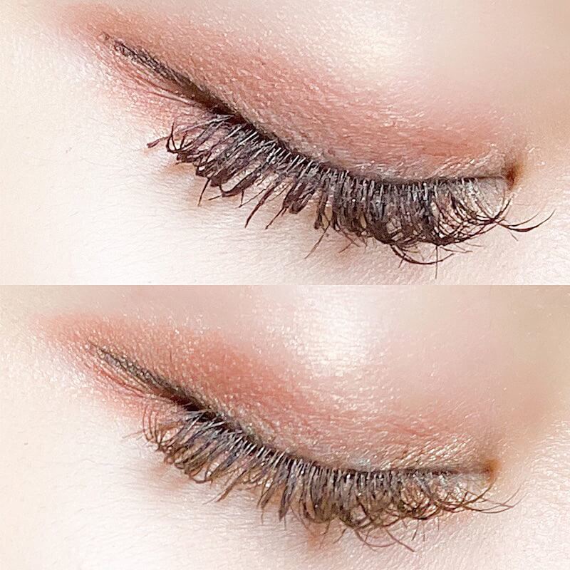ヘーゼルブラウンはマスカラ液自体は少々黄味のあるブラウンに見えますが、実際に塗ってみるとかなり目元に馴染みます。