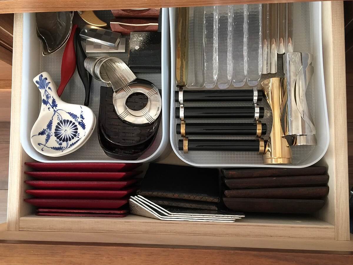 こちらもキャビネットの引き出しに収納していますが、カトラリーケースとは違うものを使用しています。