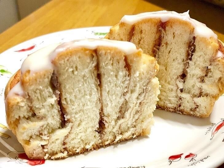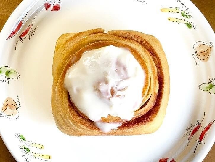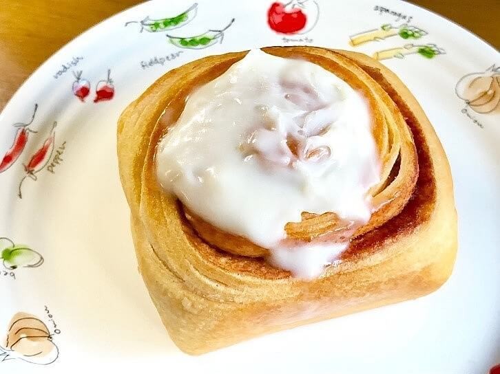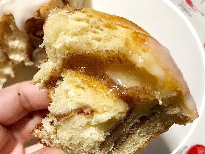 レンジで温めるとフロスティングとシナモン部分がさらに溶けます。この見た目も食欲をそそりますね。