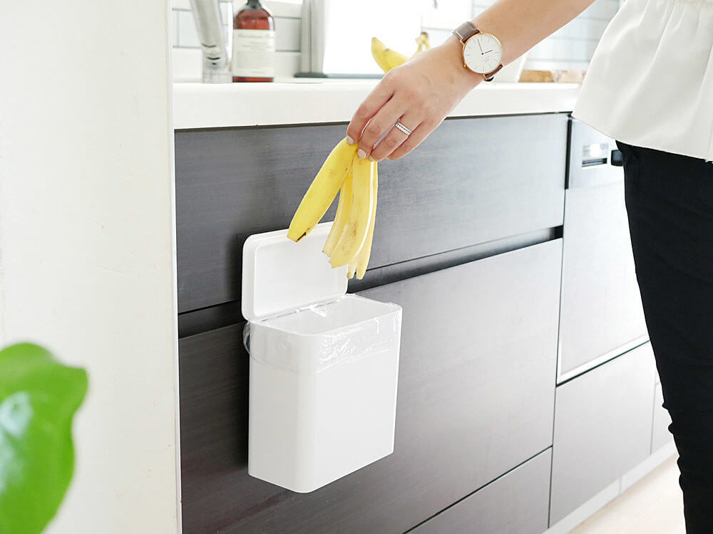 キッチンの作業台に置き型のゴミ箱として置いても邪魔になりません。