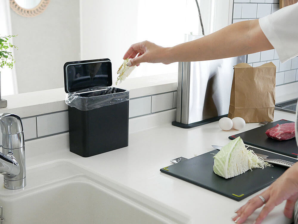 片手でサッとふたを開けられるので、調理中に出るゴミをその場でポイ!